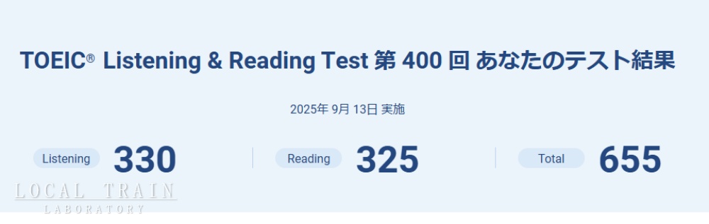 リスニングが330点、リーディングが325点、総合で655点という、壊滅的な結果となりました。
