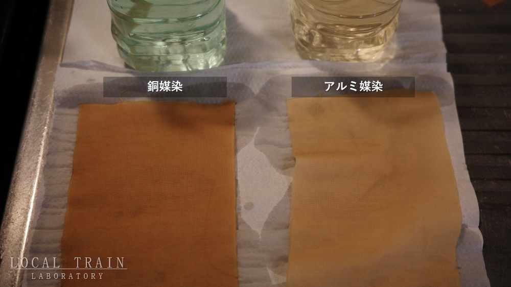本記事では、ミョウバンと銅の媒染で、染めの仕上がりを比較してみます。