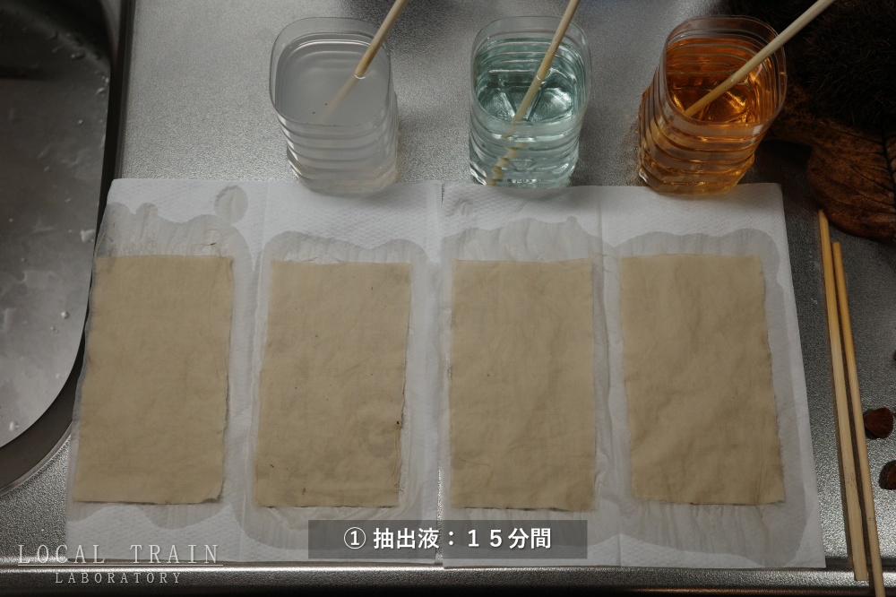 さらに、もう一度抽出液に15分間浸します。やや色が濃くなってきたように見えます。