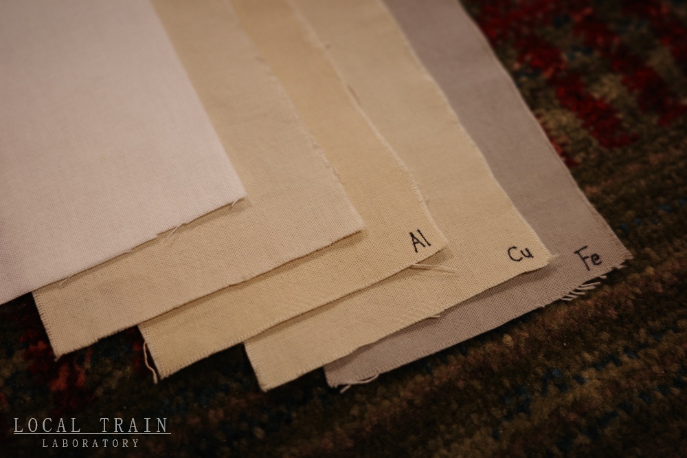 今回の草木染めでは、アルミ・銅・鉄の主要三媒染で行いました。