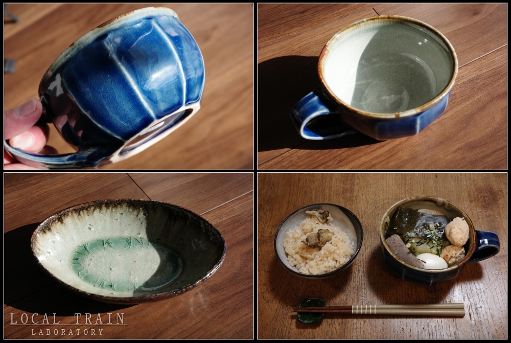 ブルーの器は取っ手がついているのと、やはりこの青が決め手。(写真上2枚)